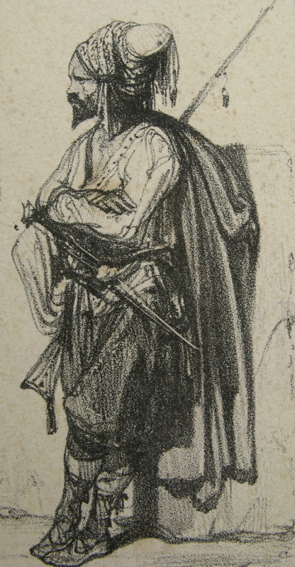 Croquis par divers Artistes, No. 55. Original lithograph by Alexandre-Gabriel Decamps / épreuve du 1. tirage avant enlevement du nom de Lemercier. Paris, 1830 chez Ostervald aime, quai des Augustina and Rittner, Boulevard Montmartre 12 and London published by Ch. Tilt, 86 Fleet Street / 37, Motivgröße 14 x 21,5 cm auf Blattformat 20,5 x 26,5 cm. Gedruckt von "Imp. Lith. de Lemercier, rue du Four 55". Im Druck signiert "DC". Blatt leicht fleckig, sonst aber sehr gutes Exemplar..