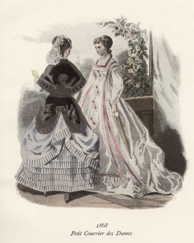 Petit Courrier des Dames 1868. Die handkolorierte Graphik zeigt zwei