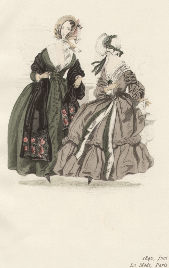 1840, Juni, La Mode, Paris. Die handkolorierte Graphik zeigt zwei junge