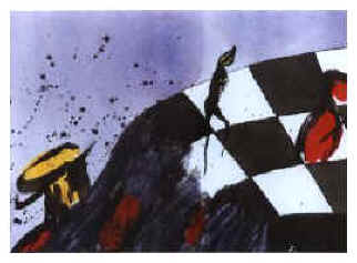 Schachabsturz. Mischtechnik auf Papier. 1991. Format 30 x 40 cm.