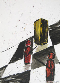 Turm Endspiel II. Mischtechnik auf Papier. 2017. Format 28 x 24 cm.