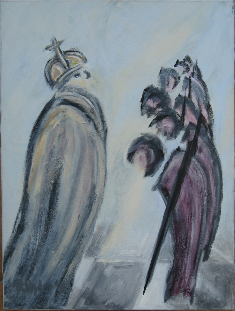 Bauern bedrohen den König. Öl auf Leinwand. 1993. Format 80 x 60