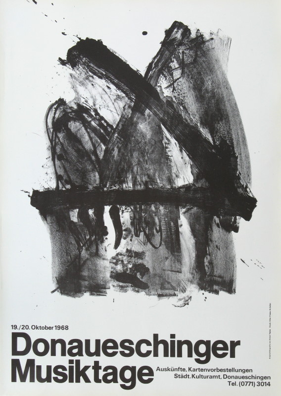 Antoni Tàpies - Donaueschinger Musiktage 1968. Original-Lithografie vom Stein gedruck im Oktober 1968 für das Städtische Kulturamt Donaueschingen. Gedruckt bei der Erker-Presse St. Gallen. Größe 88,5 x 63 cm. Sehr guter Zustand.