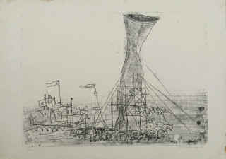 Fritz Graßhoff - "Paris". Original Beistiftzeichnung und Lithographie von Fritz Graßhoff signiert. Motiv Format 35,7 x 49,5 cm auf Blattformat 43 x 61 cm. Die Lithografie ist mit Bleistift von Hand signiert, datiert 54 (1954) und betitelt.