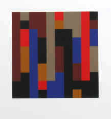 Der Künstler hat mit geänderten Farben den 5 Farben Siebdruck von Max Bill nachempfunden. Titel des Originals: Transcoloration in fünf Quadraten, 1973