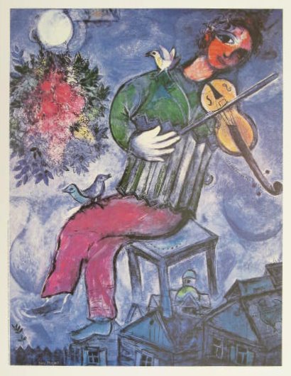 Marc Chagall - Le Violoniste Bleu / Blauer Geiger. Farboffsetlithographie nach dem Gemälde von Marc Chagall aus dem Jahr 1947. Collection