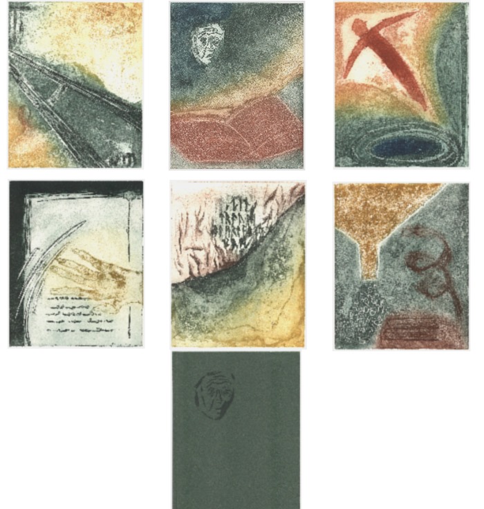 6 Farbradierungen. Handeinband von Christian Zwang in Hamburg. 28 Seiten. Format: 20 x 27 cm. 1997. 42 nummerierte und signierte Exemplare.