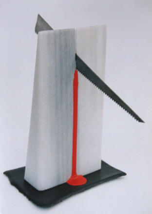 Skulptur zu Hermann Hesse – Die Marmorsäge ist eine