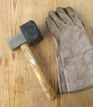 nicht wie üblich mit dem Knüpfel sondern mit einem Schlosserhammer (Foto
