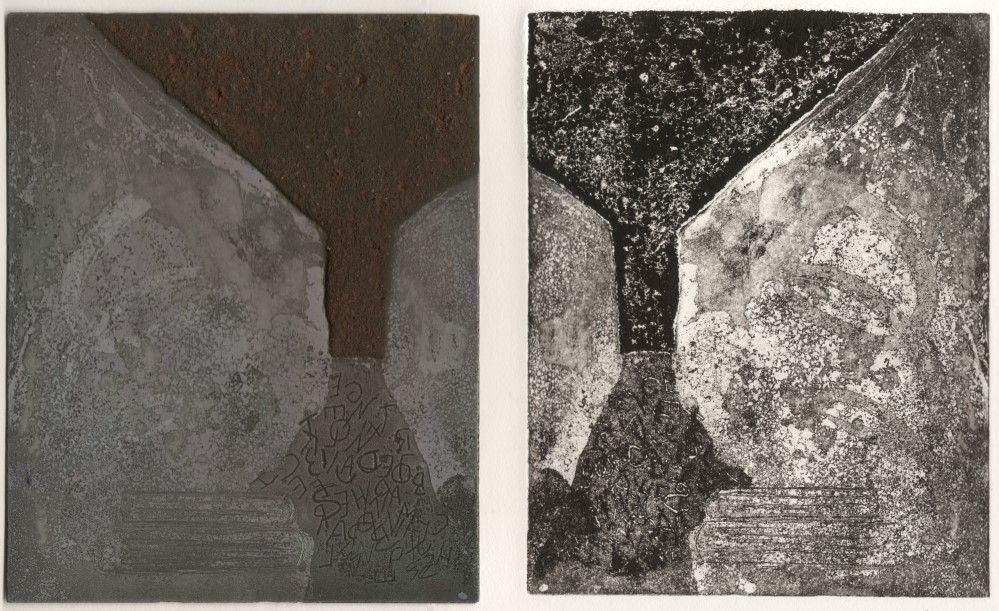 Ätzradierung mit Durchätzung - Radierplatte und Druck